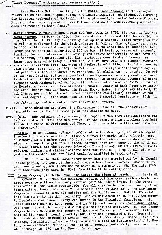 The 4 pages displayed below appear to be a modern scanning of an original document typed onto foolscap in a style and format that we have associated with the work of Dr Young. The only clue being that the last sentence by being incomplete suggests that it was typed onto foolscap paper. Our researches have led us to believe that this sentence in the original document was referring to his Jacobite tendencies.