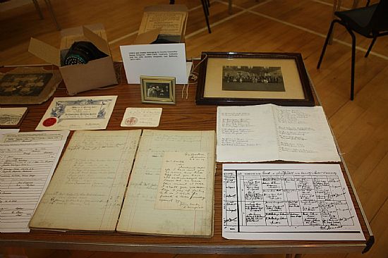 A selection of photos of the tables set out by the Dingwall Museum team and the History of Culbokie Group.